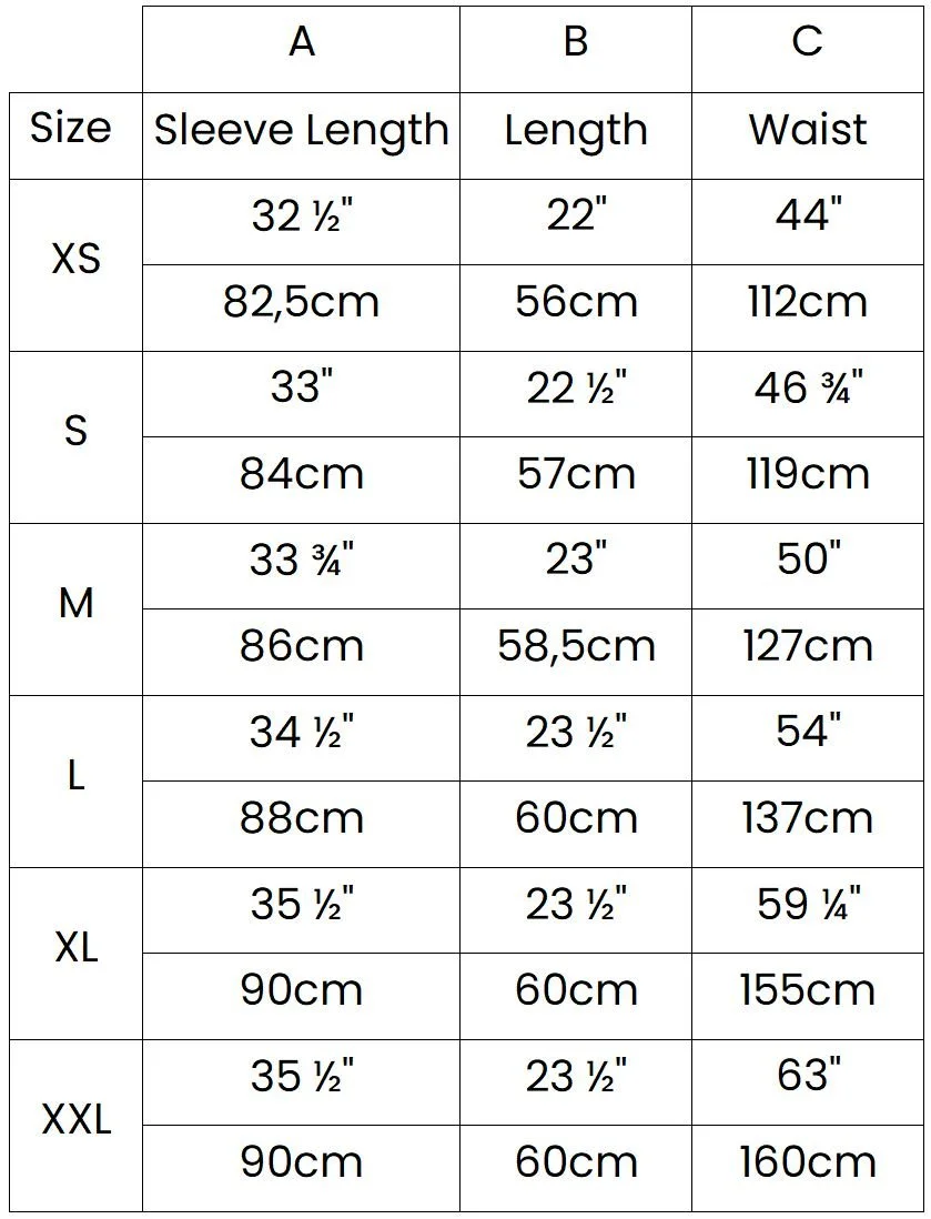 If you choose the length option short, the garment will be approximately 1" (2-3cm) shorter than the regular length.